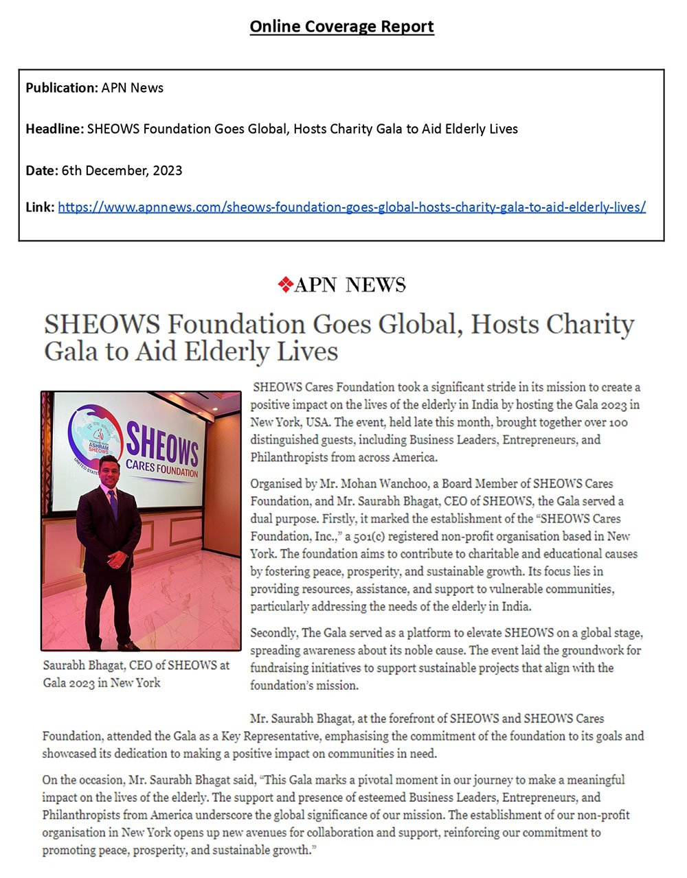 SHEOWS News Feature, Deccan Chronicle